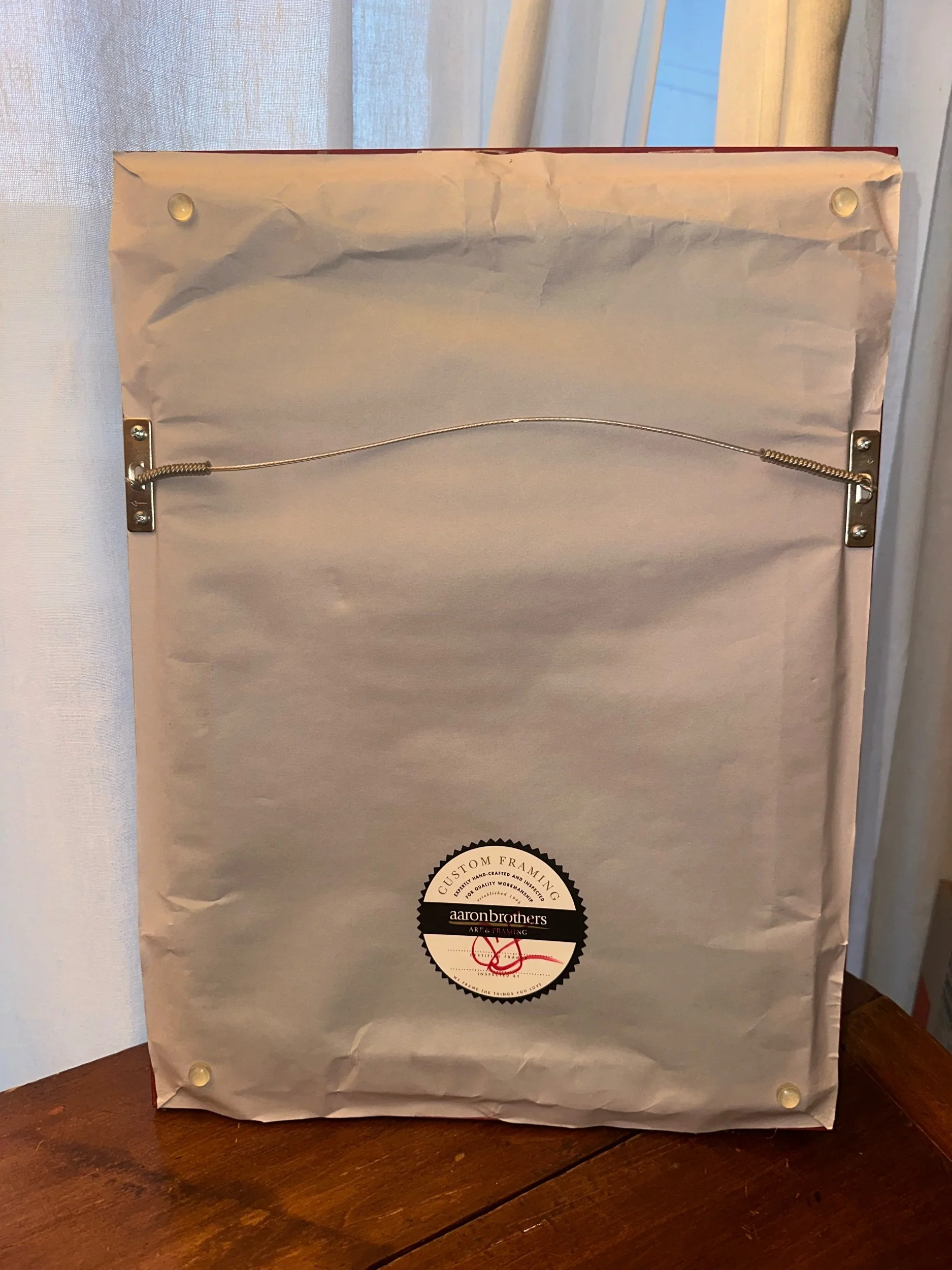 Professionally framed in a bold red wood frame that complements the wine tones perfectly, this piece feels both classic and charmingly nostalgic. The craftsmanship and color work give it that timeless, collected-over-time character I love.